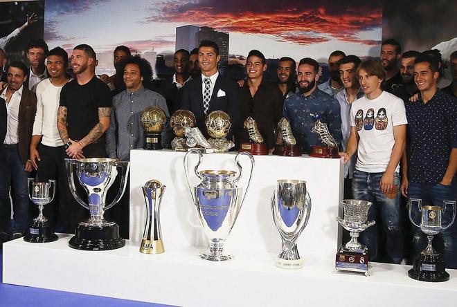 之后皇马在训练基地为C罗颁发了象征着队史射手王的特制战靴奖杯以纪念这一时刻。