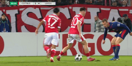 第13分钟,巴卡约科右路内切破门,莱比锡1-0科特布斯